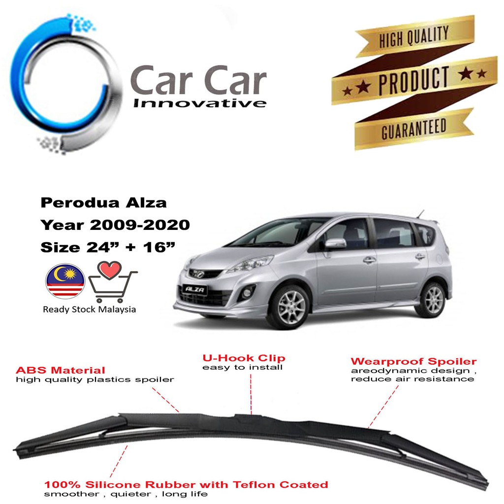 Perodua Alza Wiper Silicone Wiper Blades Car Windshield 1 Pair Size 24 16 Year2009 2020 Shopee Malaysia